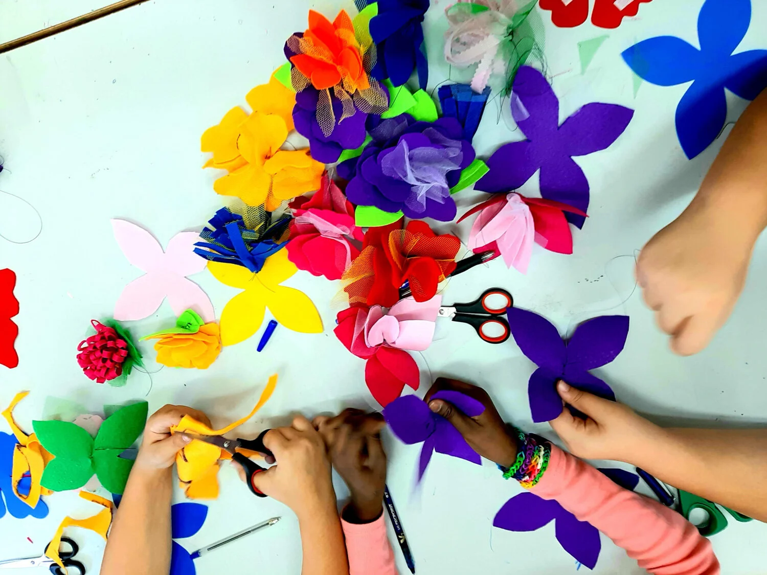 פעילות קהילתית ששילבה את תלמידי הדקל, ביהס השכונתי, ומועדון הגימלאים השכונתי ביצירת פרחים לתליה במרכז המסחרי כדי להפוך אותו יותר שלנו.